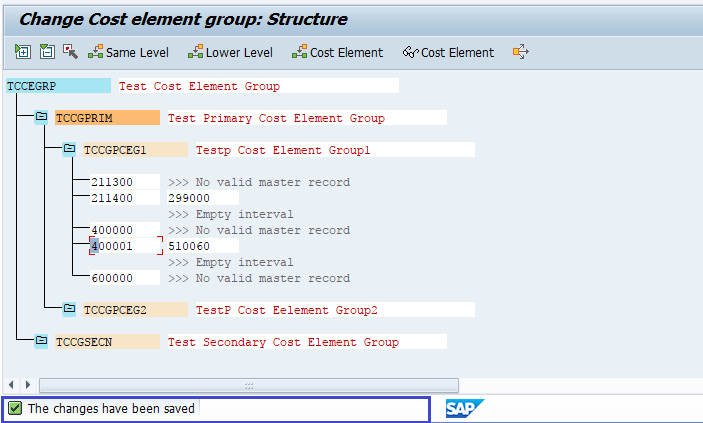 Step-7: - Repeat Step-5 to Step-6 to add as many as required low level Cost Element Groups.